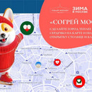 Маскот проекта «Зима в Москве», собачка корги, поможет установить сердечко на карте.
